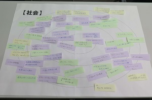 研修では、新規事業創出に必要なスキルやアプローチの方法について体系的に学びました。例えば、未来年表を使って将来の社会課題を推測し、その社会課題を連鎖・関連マップ(リンケージ)に書き出し、グループで解決策を見つけるという取り組みを行いました。
