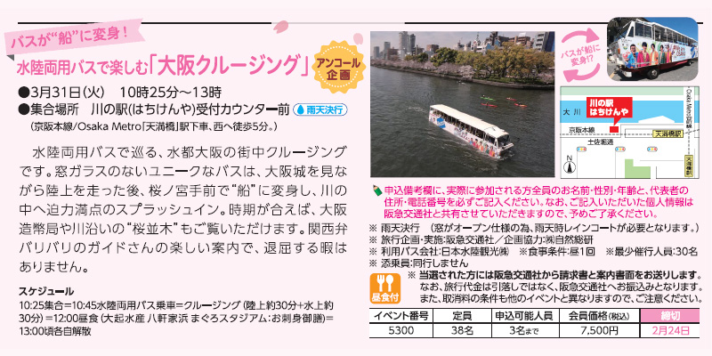 水陸両用バスで楽しむ「大阪クルージング」(アンコール企画)(昼食付)
