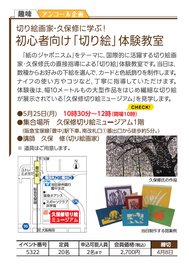 初心者向け「切り絵」体験教室(アンコール企画)