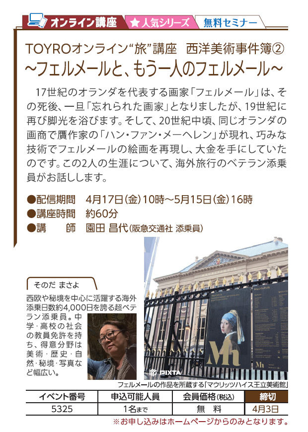 ~フェルメールと、もう一人のフェルメール~(人気シリーズ)(無料セミナー)