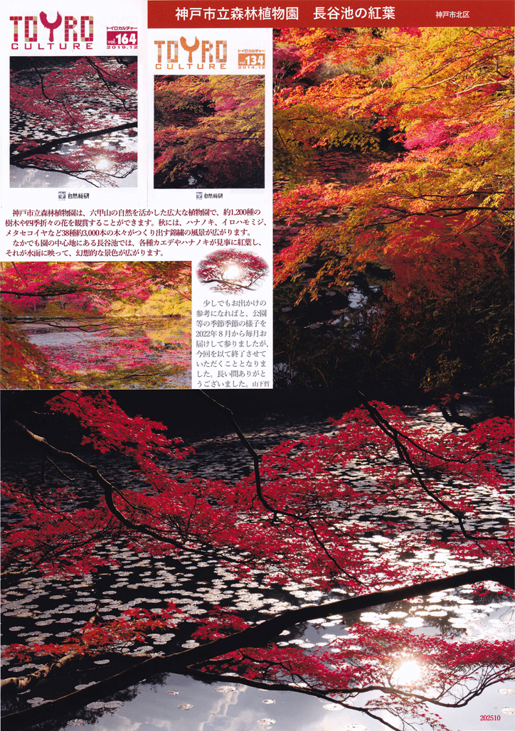 - 10月は、トイロカルチャー 164号、134号の表紙写真でご紹介した「神戸市立森林植物園 長谷池の紅葉」です。