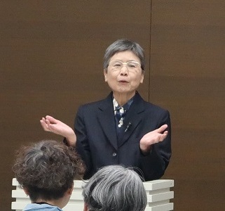 大阪発祥の伝統芸能「文楽」について、文楽略年表を見ながら代表的な作家、その作品の見どころなどを中心に分かりやすくお話しいただきました。特に近松門左衛門が残した有名な作品『曽根崎心中』については、その時代背景とともに、時にユーモアを交えながら楽しく教えていただきました。さらに近松が、同年代の竹本義太夫、豊竹若太夫らと一緒に切磋琢磨し合い、文楽を盛り上げてきた時代についてもお話を聞くことができました。